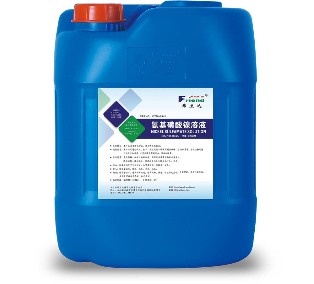 吉林市弗蘭達(dá)科技股份有限公司成立于2004年,位于吉林省吉林市龍?zhí)督?jīng)濟(jì)開發(fā)區(qū)精細(xì)化工園漢江路99號(hào),注冊資本1000萬元,占地2萬平方米。專業(yè)從事醋酸鎳、氨基磺酸鎳、堿式碳酸鎳、氨基磺酸鈷等系列產(chǎn)品的研發(fā)與生產(chǎn)。產(chǎn)品均通過歐盟Reach和Rohs認(rèn)證,生產(chǎn)制造過程通過了ISO9001質(zhì)量管理和ISO14001環(huán)境管理體系認(rèn)證,擁有自主進(jìn)出口經(jīng)營權(quán)。本著追求卓越、回報(bào)社會(huì)的企業(yè)宗旨,本著誠信擔(dān)當(dāng)、品質(zhì)卓越、激情創(chuàng)新、和諧共贏的核心價(jià)值觀,為客戶提供優(yōu)質(zhì)服務(wù),做行業(yè)知名品牌。產(chǎn)品主要應(yīng)用領(lǐng)域:鋁合金陽極氧化、著色、封閉劑行業(yè);精密電鍍、電子電鍍行業(yè);石油化工、機(jī)械行業(yè)的催化劑制造、電鍍主鹽等。